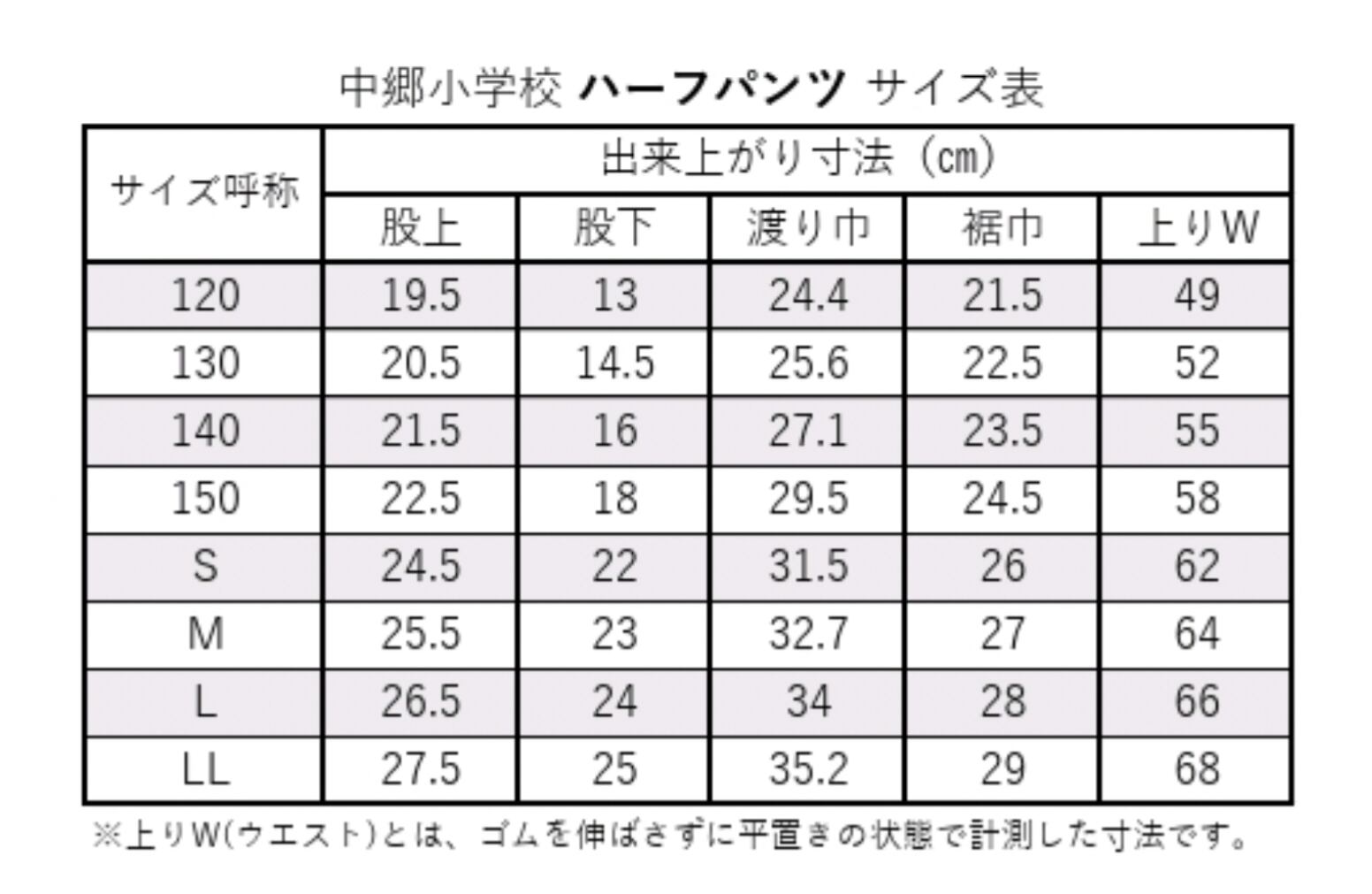 中郷小学校の〈新デザイン〉ハーフパンツ120cm~Lサイズです。